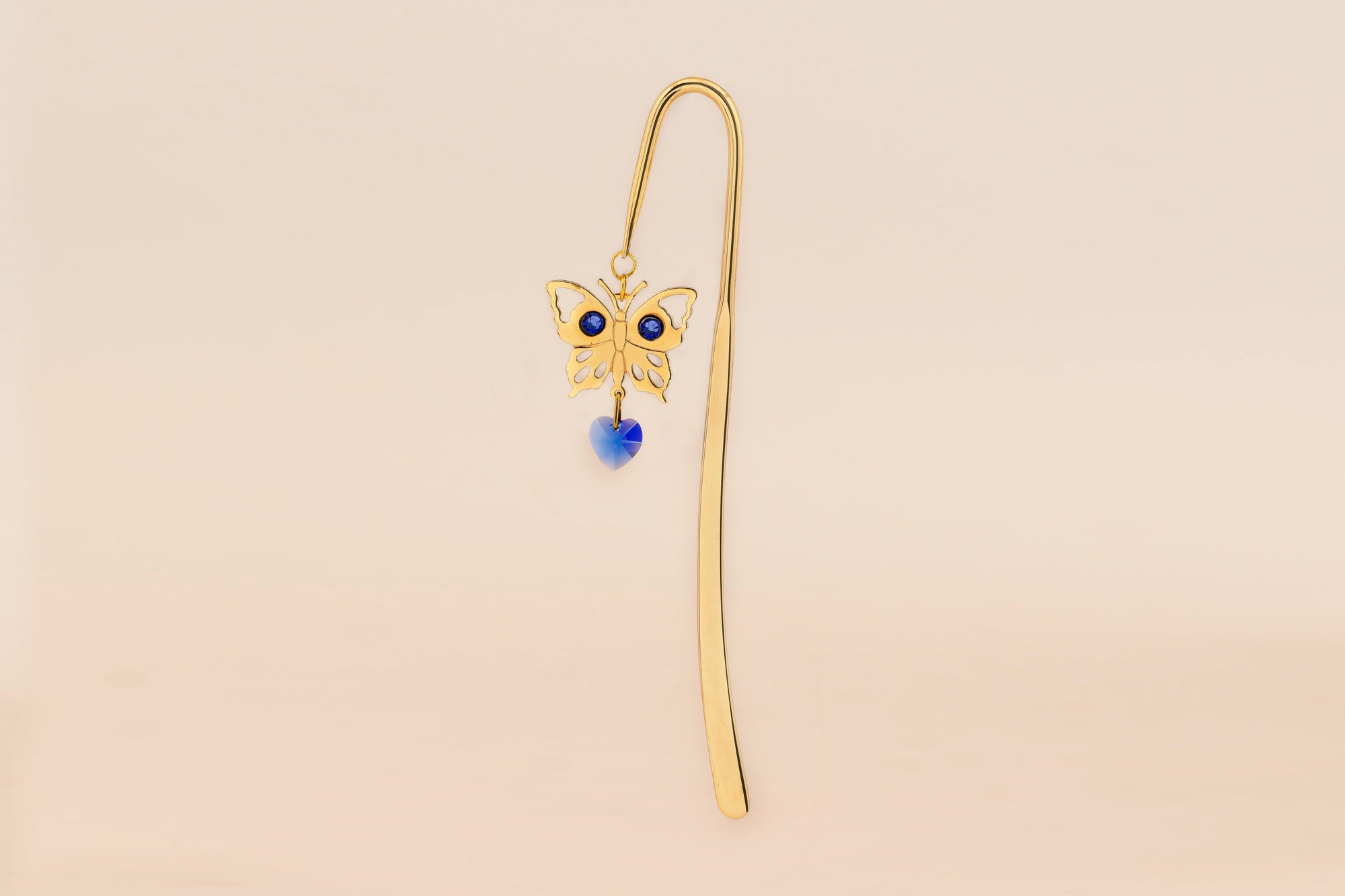 Introducing our beautiful 24-karat gold-plated bookmark featuring a charming butterfly. This elegant accessory adds a touch of enchantment to your reading experience. Let the butterfly's delicate wings mark your place in your favorite books, allowing you to easily pick up where you left off. With its golden shimmer and exquisite craftsmanship, this bookmark is a wonderful gift for book lovers of all ages.
