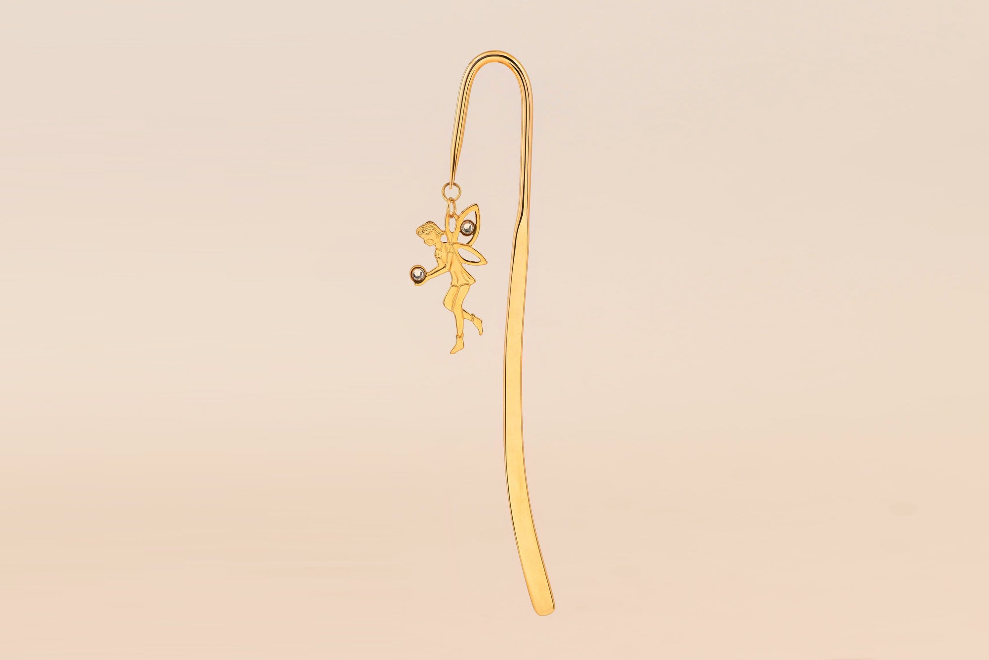 Discover our enchanting 24-karat gold-plated bookmark featuring a whimsical fairy. This magical accessory adds a touch of wonder to your reading adventures. Let the fairy's graceful presence hold your place in the pages of your favorite books, ensuring you never miss a beat. With its gleaming golden allure and intricate design, this bookmark is a delightful gift for book lovers of all ages. Embark on a journey of imagination and let the fairy guide your literary escapades.
