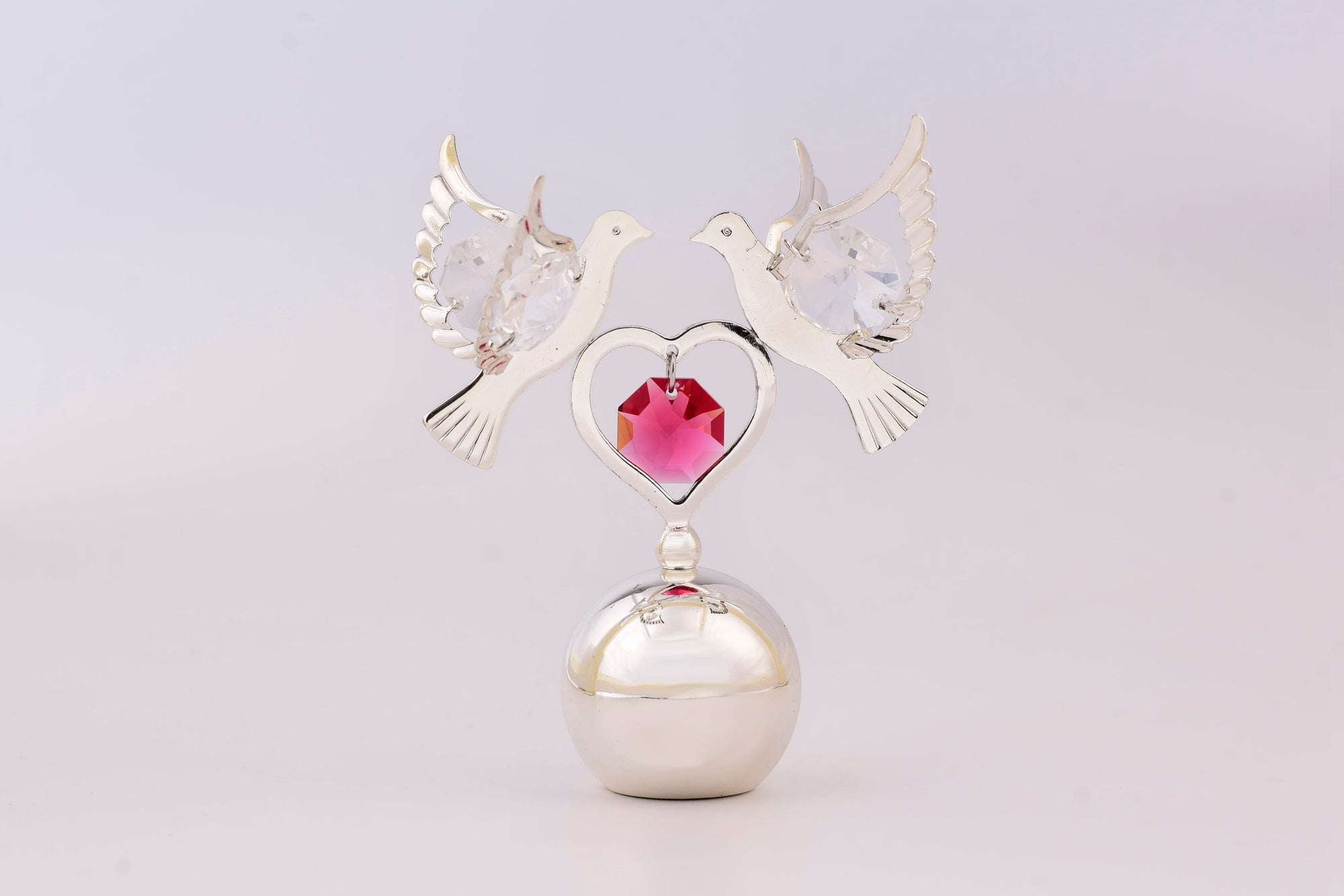 Add a touch of elegance and serenity to your desk with our 24K silver-plated double dove paperweight. Crafted with meticulous attention to detail and adorned with the world's finest Egyptian crystals, this stunning piece serves as a symbol of peace and harmony. Its substantial weight keeps your papers organized while adding a sparkling accent to your workspace. Let the radiant beauty of the doves and the shimmering crystals inspire tranquility and creativity as you work.