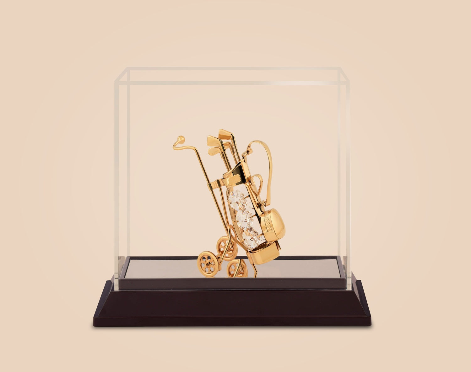 Introducing our extraordinary Golf Bag masterpiece, meticulously handcrafted for the discerning golfer. This opulent creation, adorned with 24k gold-plated accents and exquisite detailing, is the epitome of luxury and refinement. With its sleek design and impeccable craftsmanship, it stands as a symbol of prestige.