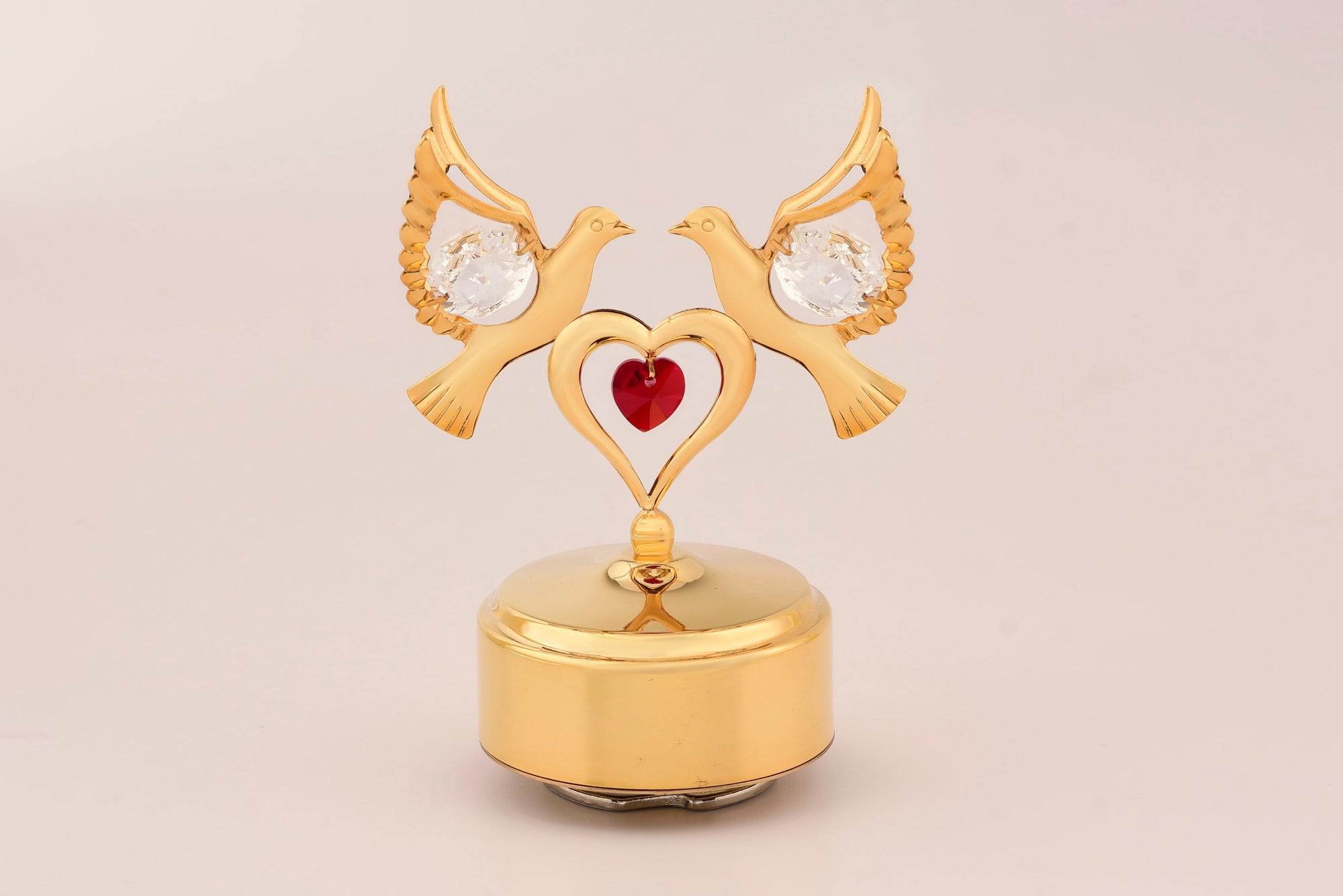 MUSICAL BASE WITH DOUBLE DOVE & HEART