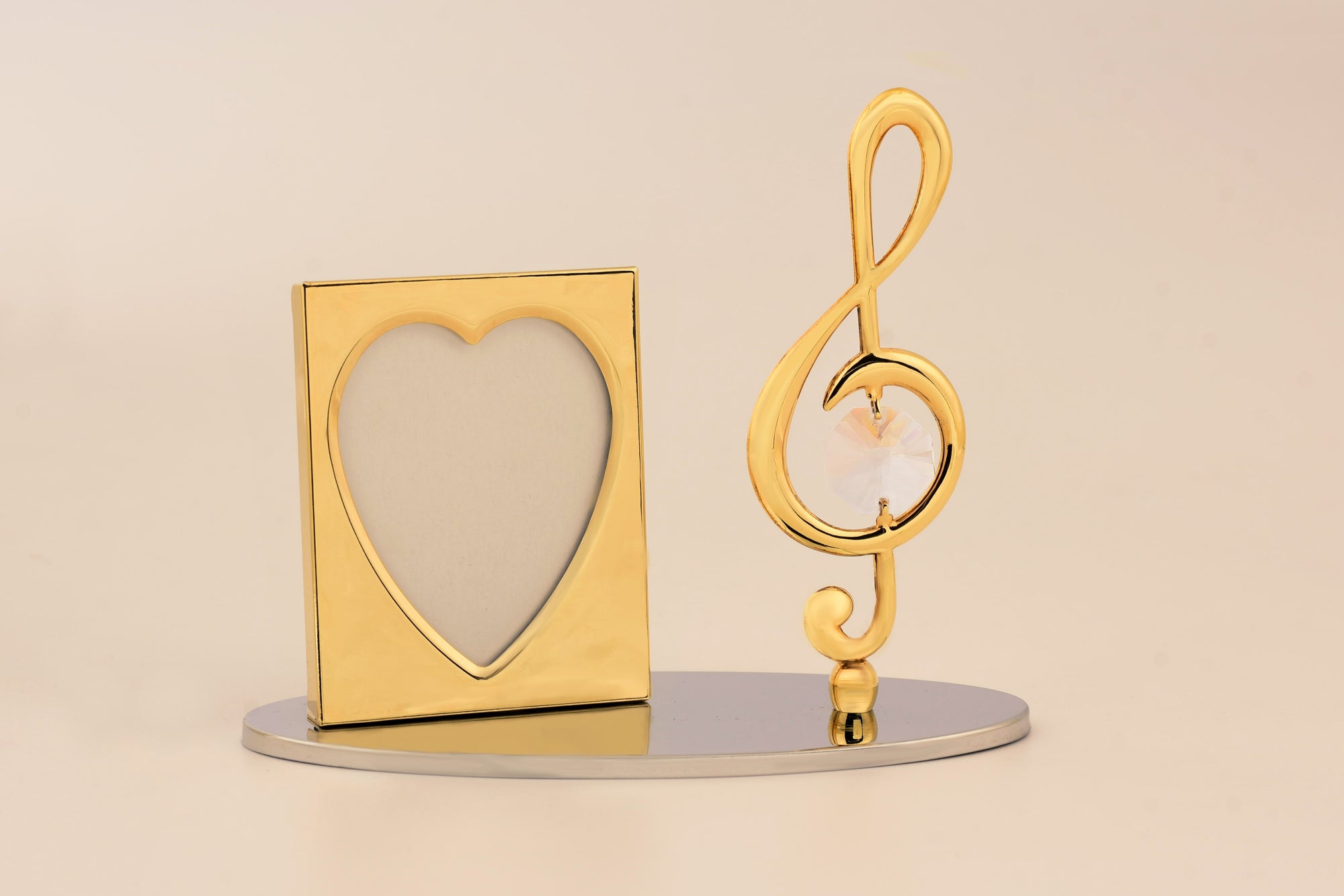 Showcase your cherished memories in style with our 24K gold-plated treble clef photo frame. Adorned with the finest Egyptian crystals, it adds a touch of elegance and musical charm to any space. Let it harmonize your favorite photos, creating a symphony of beauty and nostalgia. Celebrate the power of music and the joy of special moments with this timeless treasure.