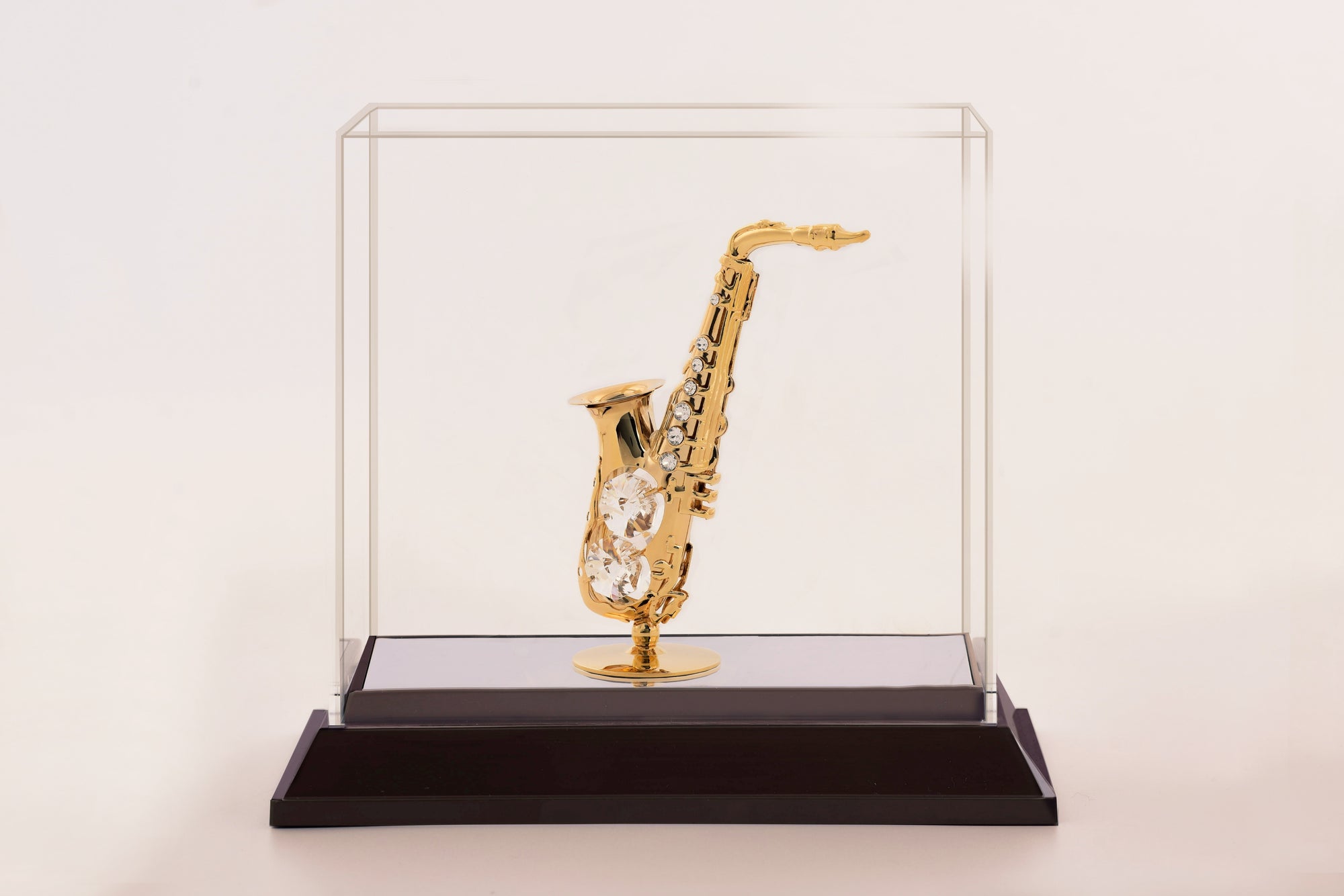 Unleash your inner jazz maestro with our exquisite 24-karat gold-plated Saxophone figurine. Crafted with meticulous attention to detail, this stunning piece captures the elegance and soulful spirit of the saxophone. Its radiant golden finish adds a touch of luxury and sophistication to any space. Display it proudly as a symbol of your love for music or gift it to a music enthusiast who appreciates the artistry of this iconic instrument. Let the melodious notes of the saxophone transport you to a world of rhythm and harmony.