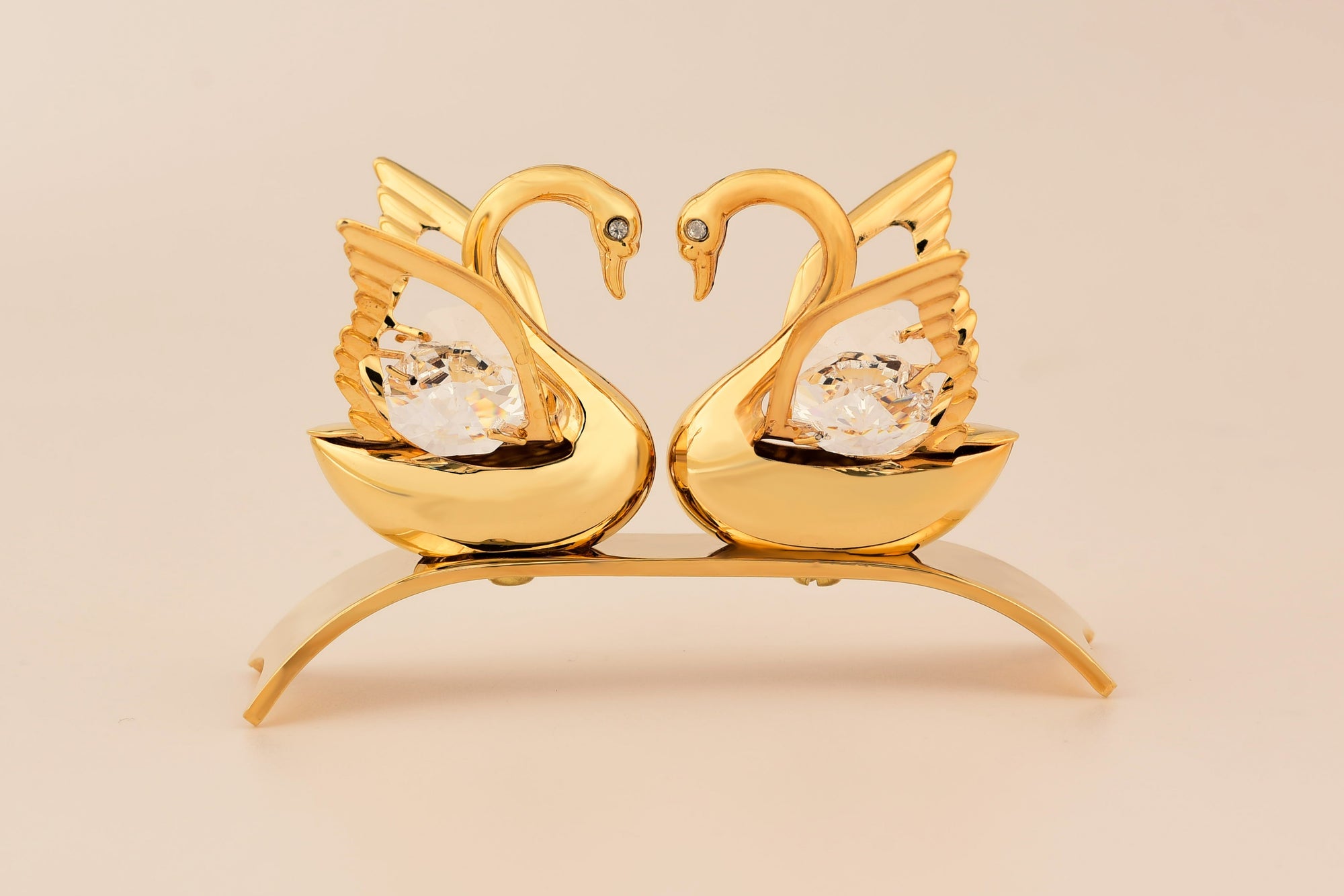 Elevate your decor with our exquisite 24-karat gold-plated Swan Double figurine. With graceful curves and intricate detailing, this stunning piece captures the elegance and beauty of swans in harmony. Its luxurious golden finish adds a touch of opulence to any space. Whether displayed as a center piece or accent piece, the Swan Double figurine is a symbol of love, grace, and serenity. Let its presence bring a sense of enchantment and sophistication to your home or office.