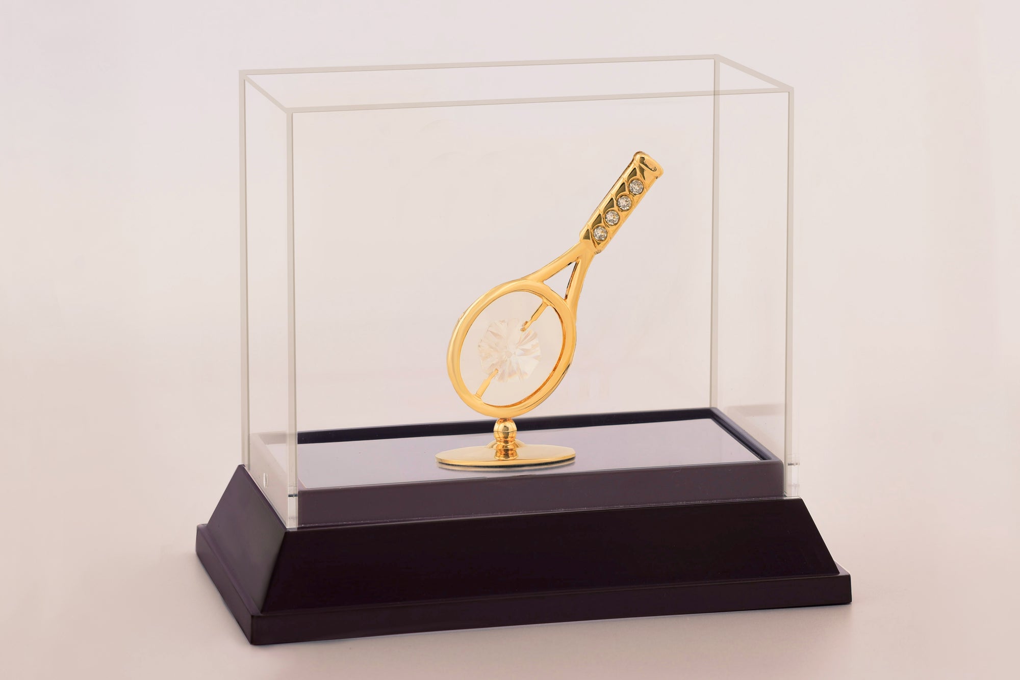 Serve up a touch of elegance with our 24-karat gold-plated Tennis Racket figurine. This exquisite piece captures the essence of the sport with its intricate details and gleaming golden finish. Whether displayed in a sports-themed room or as a symbol of determination and achievement, the Tennis Racket figurine is a testament to passion, skill, and the pursuit of excellence. Let it inspire you to reach new heights and swing for success in all areas of life.