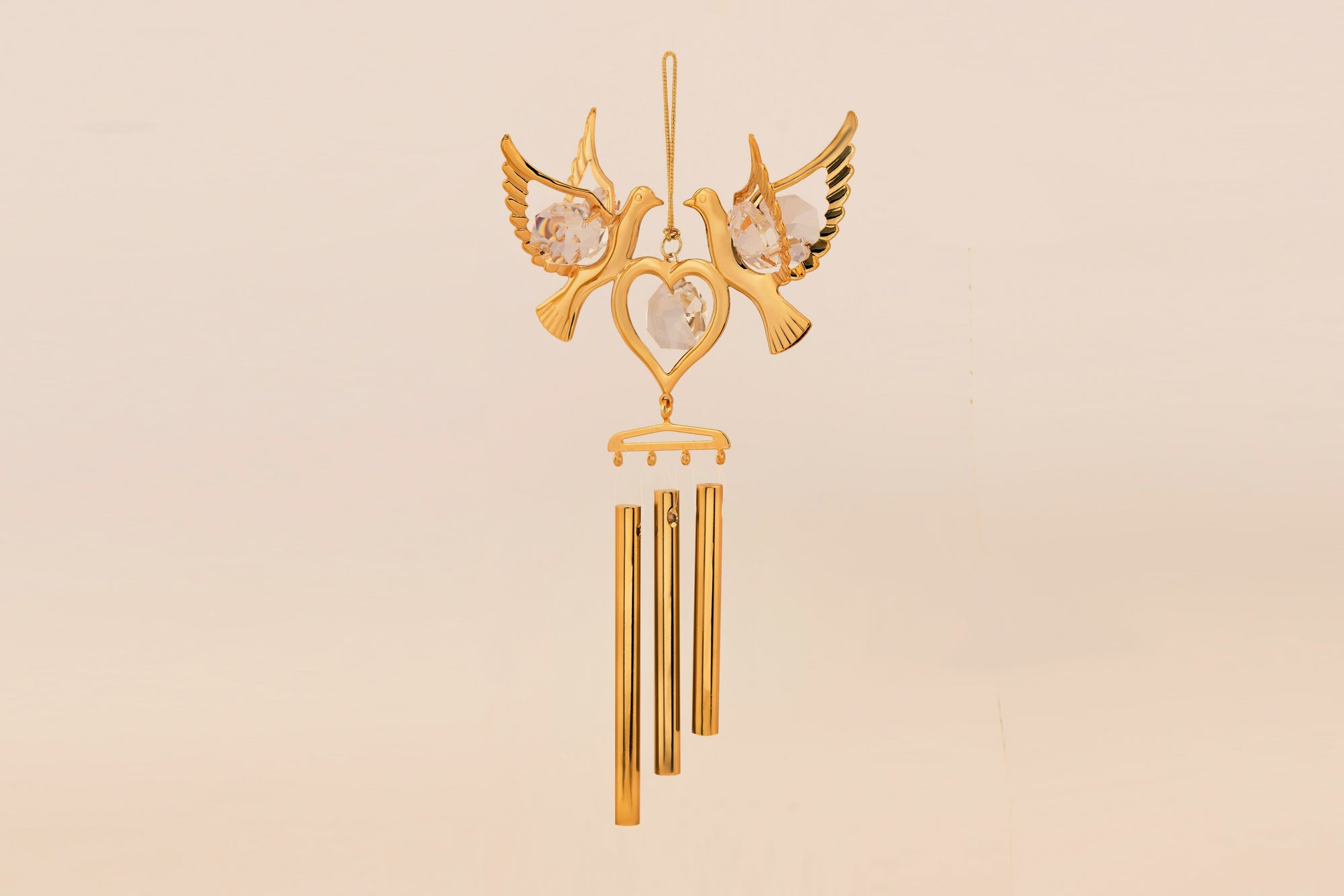 Listen to the magical music of love with our Windchime Double Dove. The gentle chimes sing a sweet melody that fills your heart with happiness. The two doves represent love and togetherness, reminding us how special it is to be connected with someone we care about. Hang this lovely wind chime in your favorite spot or give it as a gift to share the love and create peaceful moments.