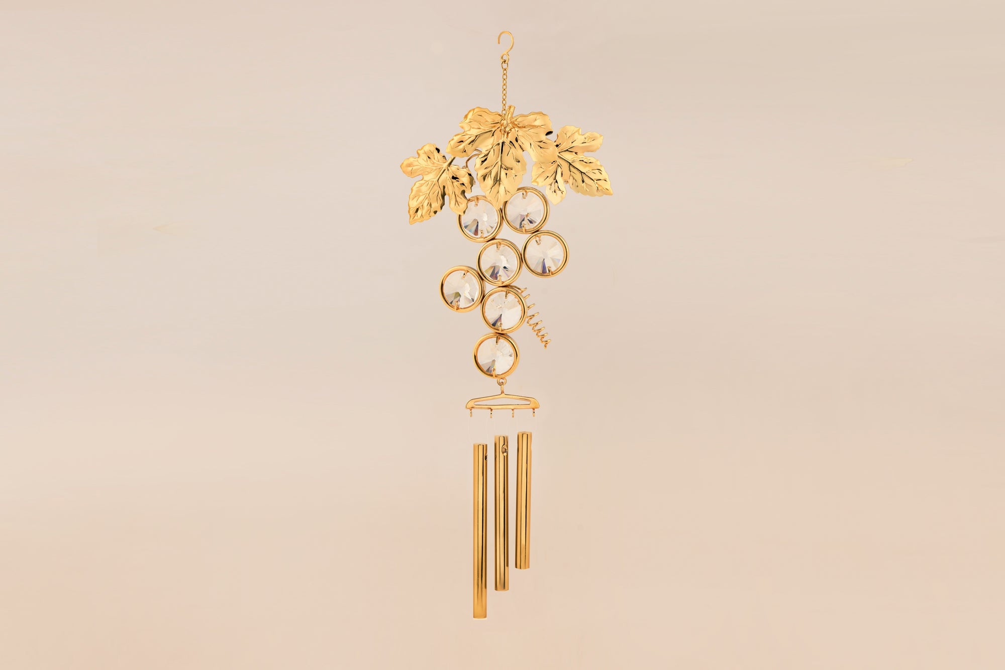 Experience the magic of music and sparkling crystals with our special 24K gold-plated wind chime. Hang it outside or in your room, and let the gentle breeze make beautiful sounds as the crystals twinkle like grapes. It's like having your own musical garden! Enjoy the enchantment and peacefulness this wind chime brings to your world.