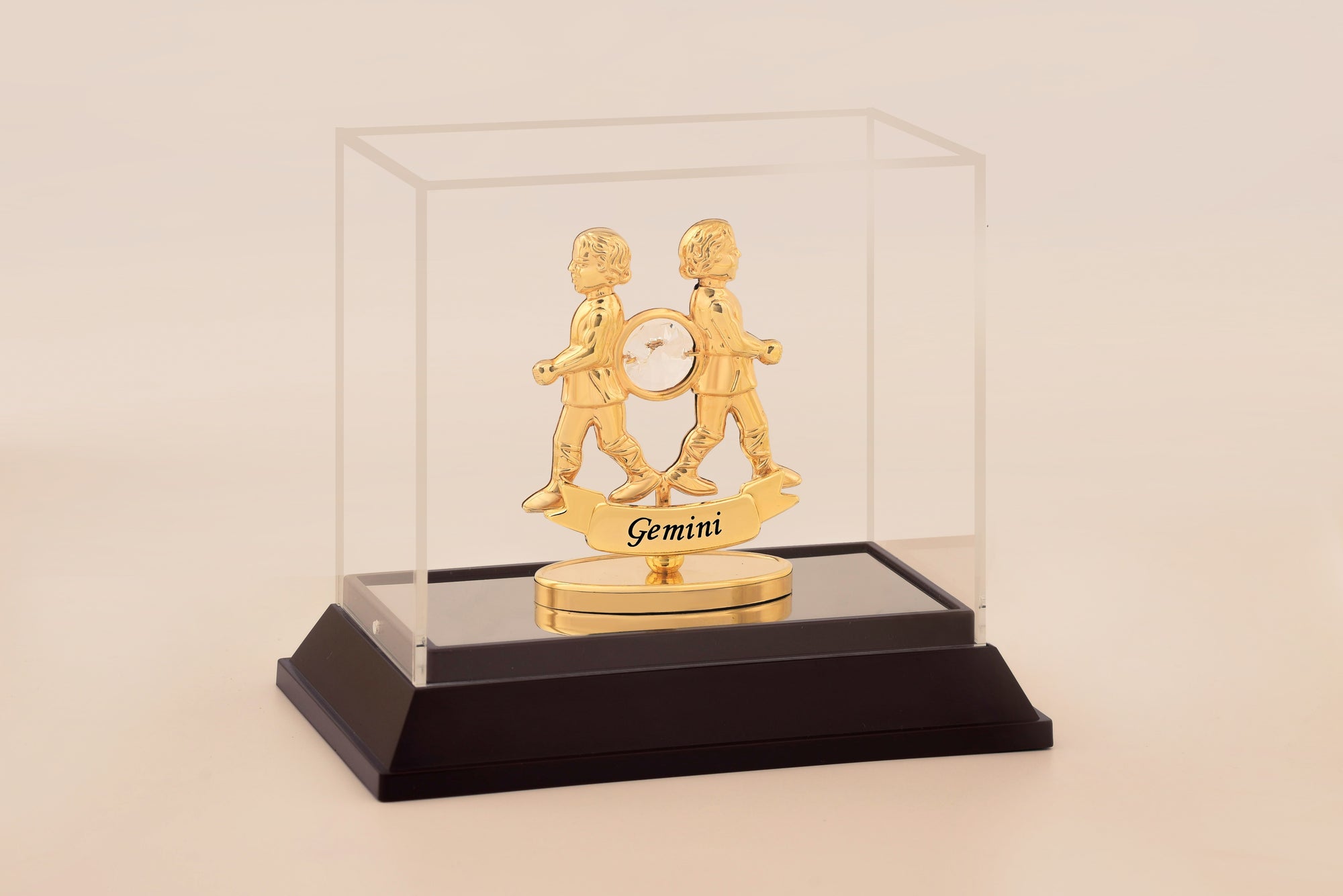 Embrace the duality of the Gemini zodiac sign with our stunning 24-karat gold-plated figurine. Symbolizing curiosity, versatility, and wit, this exquisite piece captures the essence of the Gemini spirit. With its intricate design and golden radiance, it serves as a reminder to embrace your multifaceted nature and embrace new experiences. Let the Gemini figurine inspire you to express your true self, adapt to change, and unlock endless possibilities.